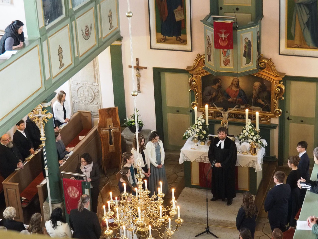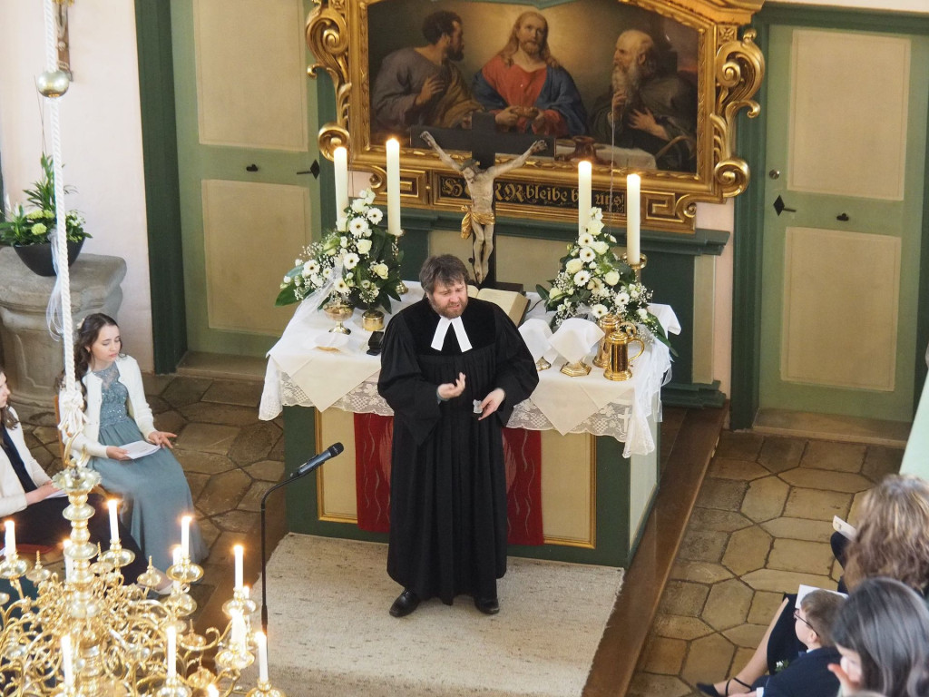 Am Weißen Sonntag haben wir in der Eysöldener St. Thomas-Kirche Konfirmation gefeiert. Pfarrer Oliver Schmidt ging in seiner Predigt auf Petrus ein, der übers Wasser läuft und zu versinken droht, weil ihm der Glaube fehlt. Er sprach ihnen Mut zu, denn „wir haben mit Jesus jemand an der Seite, egal, ob es stürmt oder blitzt. Fahr mit deinem (Lebens-)Boot in die eine oder andere Richtung und tu es in der Gewissheit, dass Christus dich begleitet".