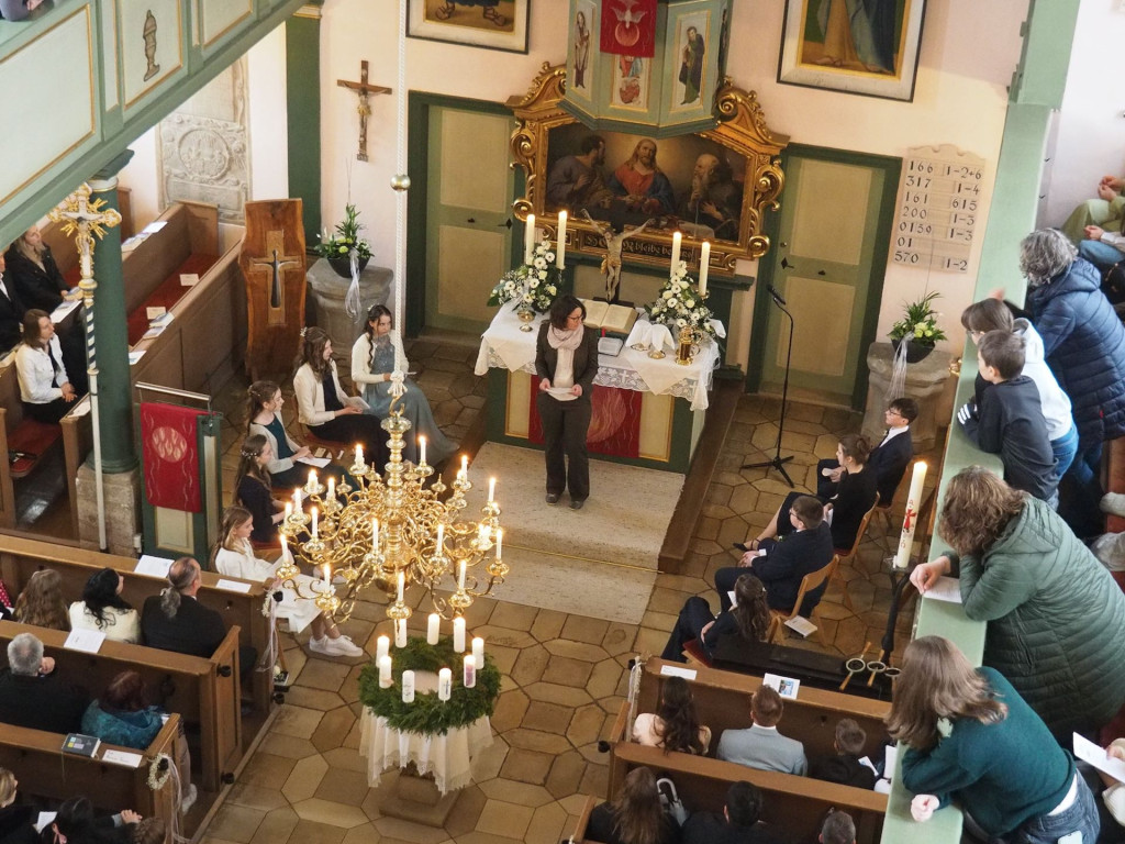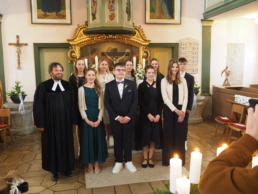 Konfirmiert wurden Raphael Grembler aus Zell, Mira Arenas Forero aus Mindorf, Leni Erdmann aus Löffelhof, Sophie Dotzer aus Steindl, Leon Schiller aus Stauf und Emma Barth, Mia Renz, Helena Schmidtkunz und Mia Thanner aus Eysölden.